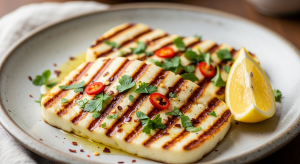 - Finish the Dish: Once grilled, transfer the halloumi to a serving plate. Drizzle with warm hot honey and a squeeze of fresh lemon juice to elevate brightness and balance sweetness.