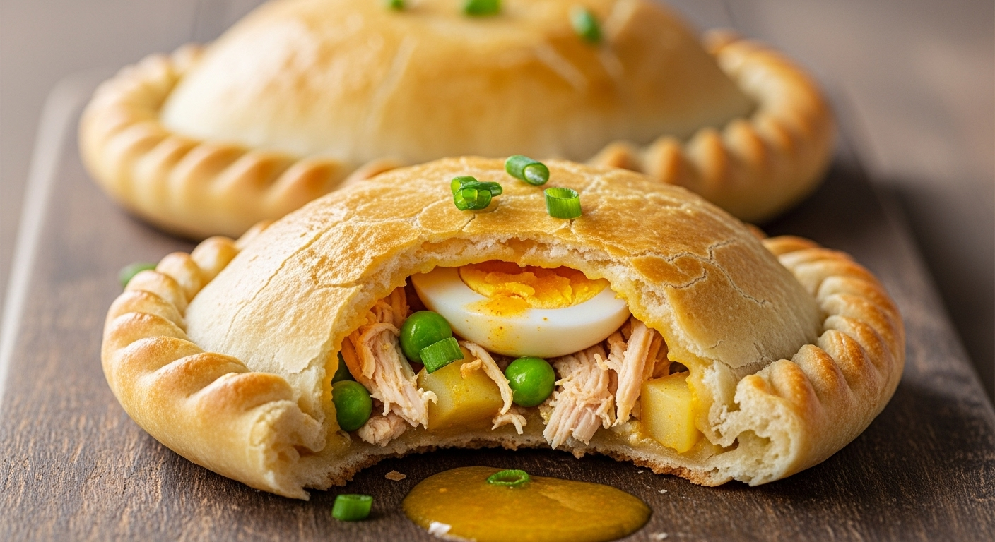 A: The magic lies in the juicy, slightly soupy chicken stew inside.The filling is a harmonious mix of tender chicken, potatoes, peas, olives, and a secret blend of spices and a touch of sweetness.What truly distinguishes it is the gelatinous broth that melts inside the dough when baked-so you bite into a warm, flavorful explosion rather than a dry filling.