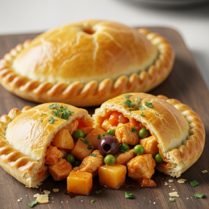 A: The dough is rolled thin and folded carefully to seal the rich filling inside,forming a plump,half-moon shape. Before baking, the edges are crimped intricately, creating a distinctive, decorative ridge. They’re then baked until golden and slightly glossy, creating a crisp exterior that holds the juicy chicken stew within.