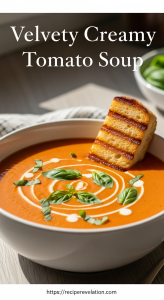 Serve this velvety creamy tomato soup in deep bowls that showcase its inviting color. Swirl in a drizzle of high-quality olive oil or a spoonful of crème fraîche for visual contrast and richness. Top with freshly torn basil leaves or a sprinkle of toasted pumpkin seeds for texture.