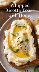 This sweet and creamy delight is as simple as it is stunning-whipped ricotta toast with honey offers an everyday moment of luxury in every bite. Enjoy experimenting with flavors and textures to make it your own!